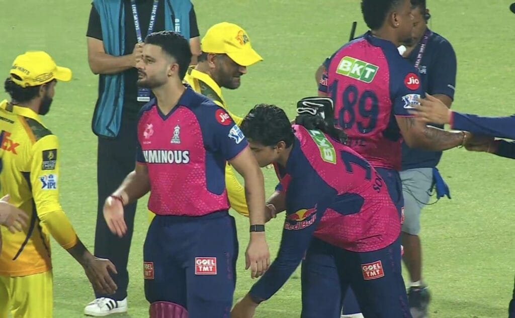 চেন্নাইকে হারিয়ে মাঠেই মাহির পা ছুঁয়ে প্রণাম ১৪ বছরের বৈভবের!