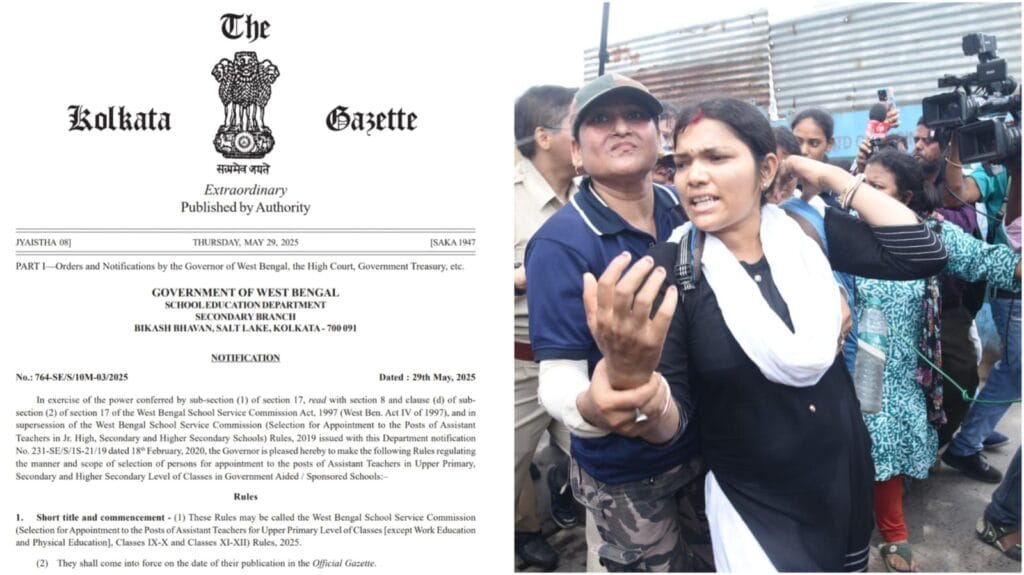 একদিকে যখন বিকাশ ভবনের সামনে ধুন্ধুমার পরিস্থিতি, চাকরিহারা আন্দোলনকারীদের ‘অর্ধনগ্ন’ প্রতিবাদে একের পর এক আটক করা হয়েছে। চাকরিহারাদের সঙ্গে পুলিশের কার্যত ধস্তাধস্তি চলে এই ধরপাকড়ের সময়। অন্যদিকে তখন নিয়োগ বিজ্ঞপ্তি জারি হয়ে গেল স্কুল সার্ভিস কমিশনের। যদিও চাকরিহারারা নতুন করে এই পরীক্ষায় বসতে নারাজ। আবার কেন পরীক্ষা দিতে হবে? এই প্রশ্ন তুলে আন্দোলন করছেন এসএসএসির চাকরিহারা ‘যোগ্য’ শিক্ষক-শিক্ষিকারা। চাকরিহারাদের নবান্ন অভিযান আটকে দেওয়ায় পুলিশের ভূমিকা নিয়ে প্রশ্ন তুললেন আন্দোলনকারীরা। একদিকে যখন আন্দোলন অন্যদিকে তখন সুপ্রিম কোর্টের বেঁধে দেওয়া ডেডলাইন মেনে রাজ্যে নতুন করে শিক্ষক নিয়োগের বিজ্ঞপ্তি প্রকাশ করল এসএসসি। নিয়োগ বিধিতে একাধিক বদল আনা হয়েছে। ওয়াকিবহাল মহলের ধারণা, এই নতুন বিধির ফলে চাকরিহারা যোগ্য শিক্ষকরা কিছুটা হলেও সুবিধা পাবেন। নতুন বিজ্ঞপ্তিতে শিক্ষাগত যোগ্যতা বা অ্যাকাডেমিক্সের নম্বর অনেকটা কমিয়ে দেওয়া হয়েছে। বদলে শিক্ষকতার পূর্ব অভিজ্ঞতা এবং ক্লাস নেওয়ার দক্ষতায় অতিরিক্ত নম্বর যোগ করা হয়েছে। ফলে যাঁরা আগে শিক্ষকতা করেছেন তাঁরা বাড়তি সুবিধা পাবেন।