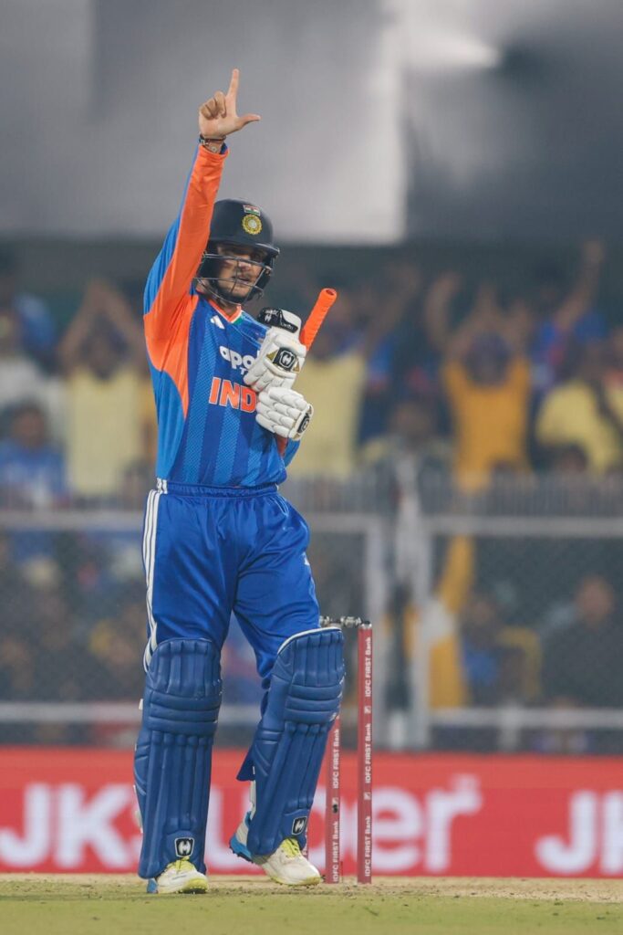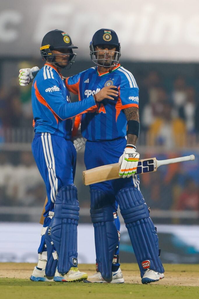 নিউজিল্যান্ডের রান তাড়া করতে শুরুতেই সঞ্জু স্যামসনের উইকেট ফেলে দিয়ে জোর ধাক্কা দেয় নিউজিল্যান্ড। কিন্তু বিপক্ষে যে অভিষেক শর্মা রণমূর্তি ধরবেন তা বুঝতে পারেননি কিউয়ি বোলাররা। অভিষেকের তাণ্ডব শুরু হয় দ্বিতীয় ওভারে। উল্টোদিকে ঈশান কিষান। চতুর্থ ওভারে কিষান বিদায় নেন ১৩ বলে ২৮ রান করে। বাকিটা সূর্যের হাতযশ। অভিষেক-সূর্য দুজনে ৪০ বলে ১০২ রানের জুটি গড়ে দলকে জয়ের বন্দরে নিয়ে যান। এদিন ১৪ বলে অর্ধশতরান পূর্ণ করেন অভিষেক। ৭টি চার এবং ৫টি ছক্কার সাহায্যে ২০ বলে ৬৮ রান করে অপরাজিত থাকলেন। তাঁর স্ট্রাইক রেট ছিল ৩৪০। সূর্য খেললেন ২৬ বলে ৫৭ রানের ইনিংস। মারলেন ৬টি চার, ৩টি ছক্কা।