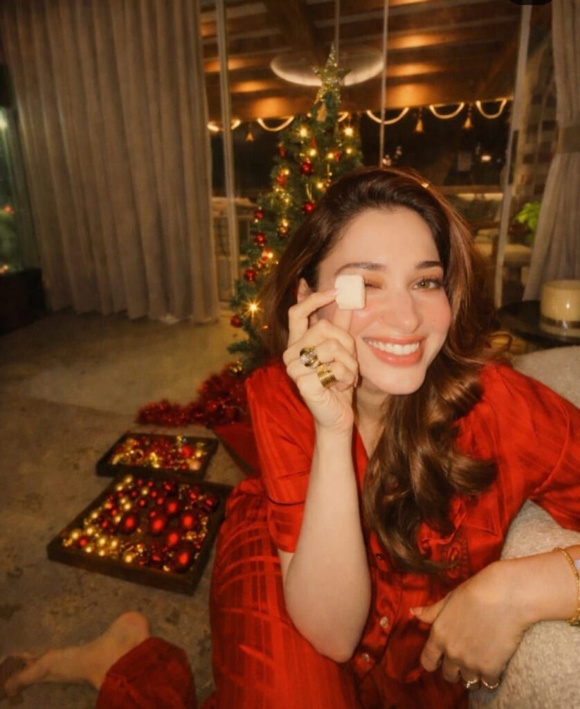 তামান্না ভাটিয়া। বাড়িতে সেলিব্রেশন করেন লাল পোশাকে।নিজের কিছু হাসিখুশি মুহূর্তের ছবি শেয়ার করেছেন, যা ছুটির মেজাজে কাটিয়েছেন বোঝাই যাচ্ছে।