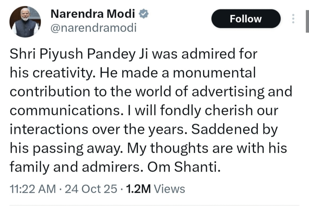 ‘মিলে সুর মেরা তুমহারা’ থেকে ‘অব কি বার মোদি সরকার’ -এর স্রষ্টা পীযূষ পাণ্ডের প্রয়াণে শোকস্তব্ধ প্রধানমন্ত্রী, বিগ বি