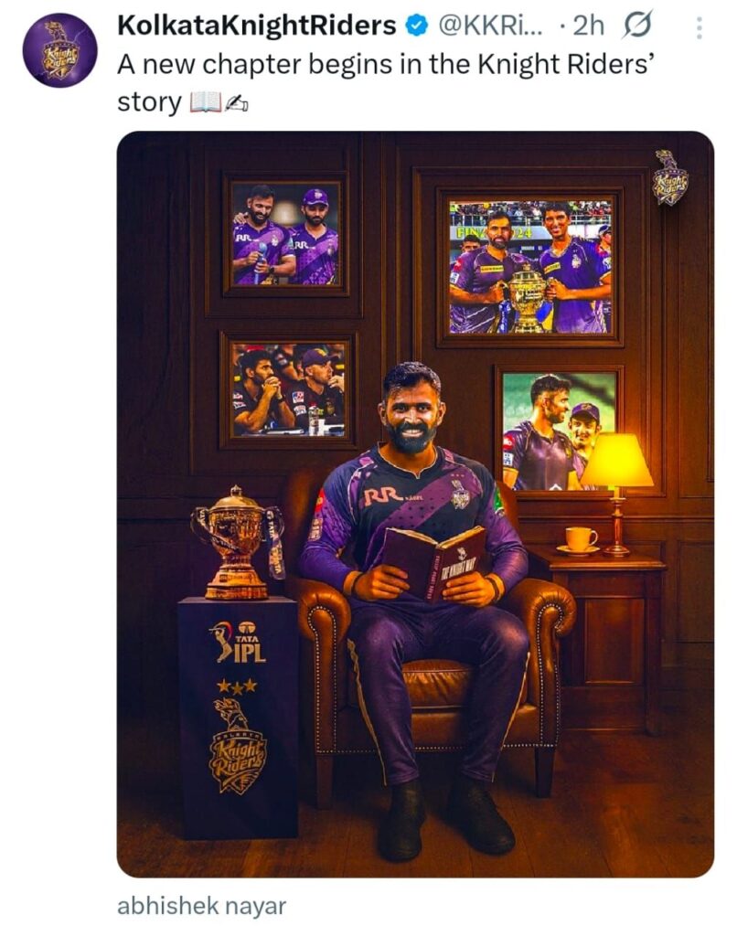 কলকাতা নাইট রাইডার্সে ‘পণ্ডিতমশাই’এর ক্লাসের সমাপ্তির পরই, নতুন কোচ কে হবেন তা নিয়ে জল্পনা চলছিল। রাহুল দ্রাবিড় থেকে ইয়ন মরগ্যান, বিভিন্ন নাম উঠে আসে। তবে কেকেআর নাম নয়, ভরসা রাখল ‘পুরোনো ঘোড়া’র ওপরই। কেকেআরের প্রধান কোচের দায়িত্ব পেলেন অভিষেক নায়ার।নায়ার দীর্ঘদিন ধরে নাইট রাইডার্সের সঙ্গে যুক্ত। কখনও সহকারী কোচ, কখনও ট্যালেন্ট স্কাউট হিসেবে দলের ব্যাকরুম স্টাফে গুরুত্বপূর্ণ ভূমিকা পালন করেছেন তিনি। তরুণ প্রতিভা যেমন ঋষভ সিং ও হর্ষিত রানাকে খুঁজে বের করার পেছনে তাঁর অবদান উল্লেখযোগ্য। কলকাতা নাইট রাইডার্সের সিইও ভেঙ্কি মাইসোর সমাজ মাধ্যমে লিখেছেন, ‘২০১৮ সাল থেকে অভিষেক নাইট রাইডার্সের গুরুত্বপূর্ণ অঙ্গ। মাঠের ভেতরে এবং বাইরে আমাদের ক্রিকেটারদের তৈরি হতে ও সাহায্য করে। ওর ক্রিকেটবোধ এবং প্লেয়ারদের সঙ্গে সম্পর্ক আমাদের অগ্রগতির বড় কারণ। আমাদের প্রধান কোচ হিসাবে ও দায়িত্ব নিচ্ছে, এটা ভেবে আমরা আনন্দিত। আশা করি কেকেআরকে পরের অধ্যায়ে নিয়ে যেতে ও সাহায্য করবে।’ চন্দ্রকান্ত পণ্ডিতের সঙ্গে কলকাতার তিন বছরের চুক্তি শেষ হয়েছে গত মরসুমেই। তারপর থেকে নতুন প্রধান কোচের খোঁজে ছিল কলকাতা নাইট রাইডার্স কর্তৃপক্ষ। কয়েকদিন আগেই অভিষেককে প্রস্তাব দেওয়া হয়। উল্লেখ্য, এর আগে ভারতীয় জাতীয় দলের প্রাক্তন সহকারী কোচ ছিলেন অভিষেক নায়ার। গত আইপিএল মরশুম চলাকালীন ভারতীয় দল ছাড়েন তিনি। তারপর মরশুমের মাঝপথেই যোগ দেন কেকেআর শিবিরে সহকারী কোচ হয়ে। এ বার চন্দ্রকান্ত পণ্ডিতের জায়গায় পূর্ণ কোচের দায়িত্ব সামলাবেন শাহরুখের দলের। গত মরশুমে মহিলাদের প্রিমিয়ার লিগের দল ইউপি ওয়ারিয়র্সের প্রধান কোচের দায়িত্ব নিয়েছিলেন অভিষেক। তবে সেই দায়িত্বে এখনও পর্যন্ত সফল হননি। এদিকে, এই বছরে ডিফেন্ডিং চ্যাম্পিয়ন হিসাবে মাঠে নেমেও কেকেআর নতুন অধিনায়ক অজিঙ্ক রাহানের তত্ত্বাবধানে সাফল্য পায়নি। এমনকী প্লে-অফে পর্যন্ত পৌঁছতে পারেনি নাইট রাইডার্স।