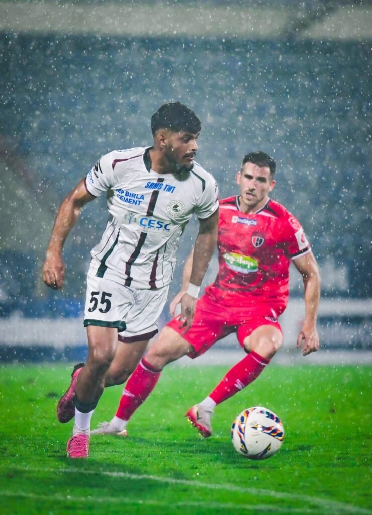 ম্যাচের শুরুতেই যেন ঝলসে উঠেছিল বাগান। মাত্র ৫ মিনিটে সাহাল আব্দুল সামাদের নিখুঁত কাটব্যাক থেকে প্রথম ছোঁয়াতেই বল জালে জড়িয়ে দেন ব্রাজিলীয় স্ট্রাইকার রবসন রবিনহো। সেই একটাই গোল শেষ পর্যন্ত পার্থক্য গড়ে দেয়। শুরু থেকে মাঝমাঠের দখল নিয়ে আক্রমণের ঝাঁজ বাড়াতে থাকে মোহনবাগান। প্রথম ২০ মিনিটে নর্থইস্টকে কার্যত চাপে রেখে দেয় তারা।