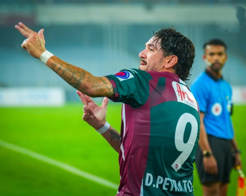ম্যাচের শুরু থেকেই চাপ তৈরি করেছিল সবুজ মেরুন ব্রিগেড। আক্রমণে দুই একবার উঠে এলেও রক্ষণ সামলাতেই ব্যস্ত ছিল চেন্নাইয়িন। প্রথমার্ধের একেবারে শেষ সময়ে ১-০ করেন জেমি।অনিরুদ্ধ থাপার নিখুঁত থ্রু পাস ধরে জেমি ম্যাকলারেন চেন্নাইয়িনের রক্ষণভাগ ভেদ করে ঢুকে পড়েন। গোলরক্ষক সমিক এগিয়ে এসে অ্যাঙ্গেল ছোট করার চেষ্টা করলেও, ঠান্ডা মাথায় বল জালে জড়িয়ে দেন ম্যাকলারেন। বিরতির পরও অবশ্য কোনও রঙ বদলায়নি ম্যাচের। মাঠ জুড়ে দাপুটে পারফরম্যান্সই করে মোহনবাগান। ৬৫ মিনিটে পরের গোলটাও পেয়ে যায় মোহনবাগান। বাঁ দিক থেকে বক্সের ভেতরে শুভাশিস একটি দুর্দান্ত ক্রস ভাসিয়ে দেন। দূরের পোস্টে থাকা পেত্রাতোস দ্রুত শট নিয়ে গোল করেন। শটটি সামিকের হাতে লাগলেও গোলে ঢুকে যায়। গোল করেই গ্যালারির দিকে ছুটে গিয়ে উরু চাপড়ে সেই চিরাচরিত সেলিব্রেশনে মেতে ওঠেন দিমিত্রি পেত্রাতস। এক বছর আগে একই দিনে ওড়িশার বিরুদ্ধে গোল করেছিলেন অজি তারকা। তাঁর একমাত্র গোলেই লিগ শিল্ড নিশ্চিত করেছিল মোহনবাগান এসজি। সেদিন বিপক্ষ দলে ছিলেন লোবেরা। এদিন দিমির গোলে উচ্ছ্বাসে মাতেন সেই তিনিই। যেবাবে খেলা হচ্ছিল, তাতে আরও গোলের আশায় ছিলেন সবুজ মেরুন সমর্থকরা। কিন্তু সহজ কয়েকটি সুযোগ শেষপর্যন্ত জালে ঢোকেনি বল।