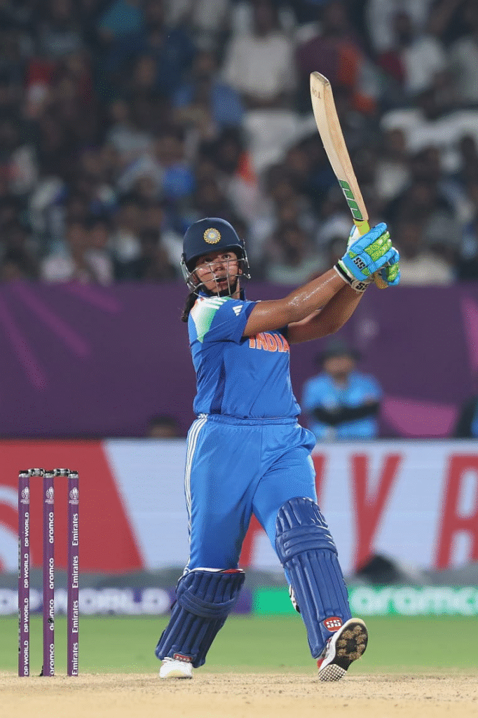 দক্ষিণ আফ্রিকার বিরুদ্ধে প্রথমে ব্যাট করতে নেমে হরমনপ্রীত কৌরের ভারত এ দিন একটা সময় ১০২-৬ হয়ে গিয়েছিল! স্মৃতি মন্ধানা ২৩, জেমিমা রড্রিগেজ ০, হরমনপ্রীত ৯ কেউই টিকতে পারেননি। তবে আট নম্বরে ব্যাট করতে নেমে সব হিসেব নিকেশ বদলে দিয়েছিলেন বাংলার রিচা ঘোষ । ৭৭ বলে ৯৪ রানের বিধ্বংসী ইনিংস খেললেন শিলিগুড়ির উইকেটকিপার-ব্যাটার । মাত্র ৬ রানের জন্য সেঞ্চুরি হাতছাড়া করেন। ১১টি চার ও চার ছক্কায় সাজানো রিচার ইনিংস রিচা ঘোষ এবং স্নেহ রানার পার্টনারশিপে বাড়ে ভারতের রান । উইকেটে চোখ একবার সেট হয়ে যাওয়ার পর রিচা শেষ ৭-৮ ওভারে ব্যাট হাতে কার্যত তাণ্ডবলীলা চালান। উইকেটকিপার-ব্যাটারের এই বিধ্বংসী ইনিংসের পর টিম ইন্ডিয়া শেষ ১০ ওভারে ৯৮ রান করে। অষ্টম উইকেটে রিচা স্নেহ রানার সঙ্গে জুটি বেঁধে ৮৮ রান করেন। ২৪ বলে ৩৩ রান করেন স্নেহ। প্রথমে ব্যাট করে ভারত ৪৯.৫ ওভারে ২৫১ রানে অল আউট হয়ে যায় ভারত।