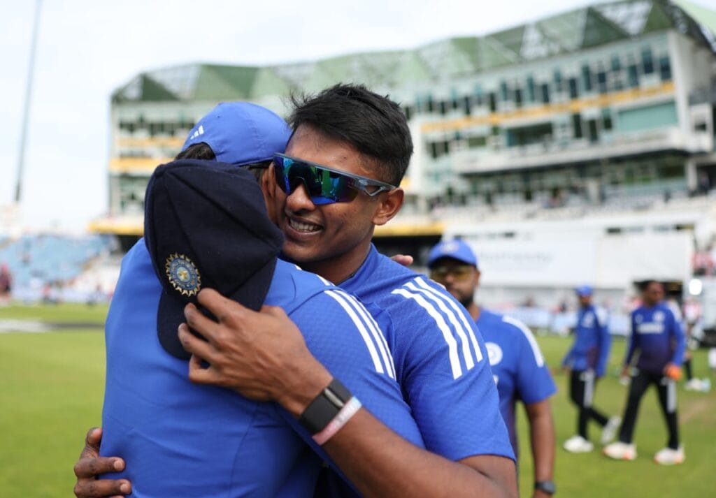 লিডসে সুদর্শন টেস্ট দলের অভিষেকের টুপি পেলেন চেতেশ্বর পূজারার থেকে। মজার ব্যাপার, ১৯৯৬ সালে এই ২০ জুনই ইংল্যান্ডের বিরুদ্ধে টেস্ট অভিষেক হয়েছিল রাহুল দ্রাবিড় ও সৌরভ গঙ্গোপাধ্যায়ের। চলতি আইপিএলেও দুর্দান্ত ফর্মে ছিলেন সুদর্শন। সর্বোচ্চ স্কোরার হয়ে অরেঞ্জ ক্যাপ পান। একইসঙ্গে ৩০০৬ দিন পর কামব্যাক করলেন করুণ নায়ার। ঘরোয়া ক্রিকেটে ভাল পারফরম্যান্সের পুরস্কার পেলেন ৩৩ বছরের ব্যাটার। তিন নম্বরে কে নামবেন তা নিয়ে চর্চা চলছিলই। সেখানে উঠে এসেছিল দু’জনের নাম- অভিমন্যু ঈশ্বরণ ও সাই সুদর্শন। শেষপর্যন্ত ভাগ্যে শিকে ছিড়ল না অভিমন্যুর।প্রস্তুতি ম্যাচ এবং ভারতীয় ‘এ’ দলের হয়ে ভালো খেললেও কখনও মূল দলে জায়গা পাননি তিনি। ইংল্যান্ড সফরের জন্য ভারত ‘এ’ দলের নেতৃত্বেও ছিলেন তিনি। প্রথম শ্রেণির ক্রিকেটে ২৭টি সেঞ্চুরি এবং প্রায় ৮ হাজারের মালিক হয়েও কবে ভারতীয় টুপি পান, সেটাই দেখার।কারণ এর আগে অস্ট্রেলিয়া সফরেও তিনি দলে ছিলেন। তবে খেলার সুযোগ পাননি।