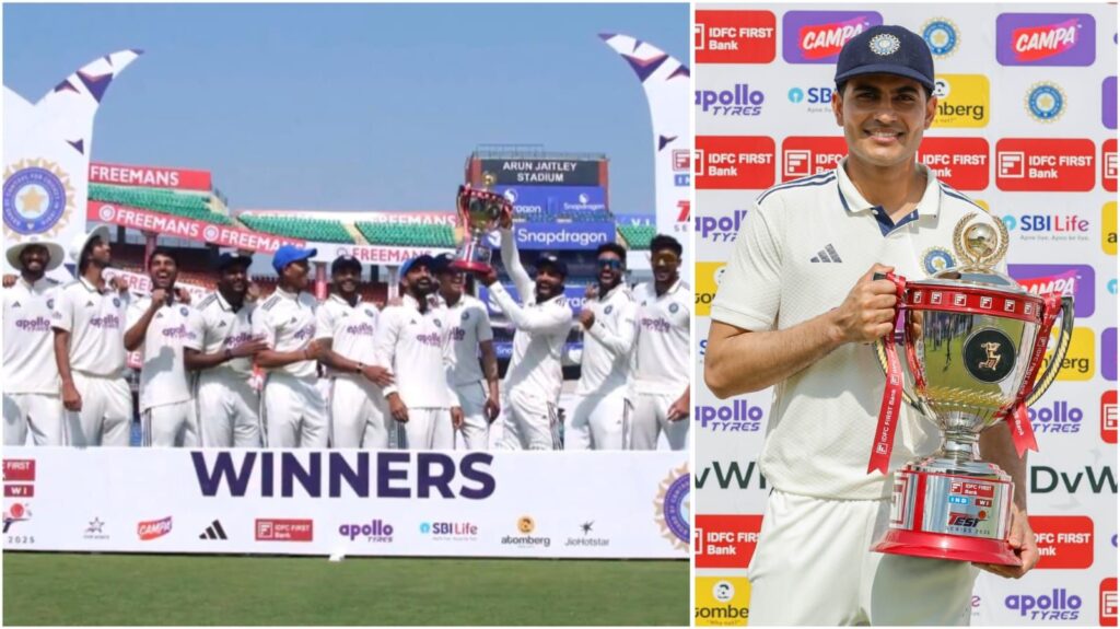 প্রত্যাশিতই ছিল পঞ্চম দিন কী হতে চলেছে। ওয়েস্ট ইন্ডিজের বিরুদ্ধে ভারতের দুই ম্যাচের টেস্ট ক্রিকেট সিরিজ ২-০ তে জিতে নিতে সময় লাগল সামান্যই। দিল্লির অরুণ জেটলি স্টেডিয়ামে দ্বিতীয় টেস্ট ম্যাচে ভারত ৭ উইকেটে ওয়েস্ট ইন্ডিজকে হারাল। ম্যাচ জয়ের জন্য ১২১ রানের লক্ষ্যে ১ উইকেটে ৬৩ রান হাতে নিয়ে পঞ্চম দিনে খেলতে নেমে, ভারত প্রথম সেশনেই লক্ষ্যে পৌঁছে যায়। কে এল রাহুল ৫৮ রানে অপরাজিত থাকেন, সাই সুদর্শন করেন ৩৯ রান। অধিনায়ক শুভমন ফেরেন ১৩ রানে। ওয়েস্ট ইন্ডিজ অধিনায়ক রস্টন চেজ দুই উইকেট নিয়েছেন। তাতেই অধিনায়ক শুভমন গিল টেস্টে পেলেন প্রথম ট্রফি জয়ের স্বাদ।