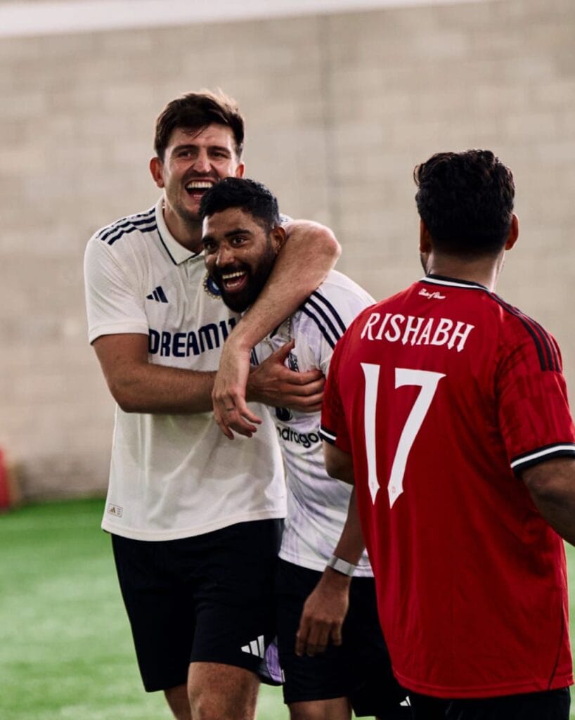 একদিকে ক্রিকেট অন্যদিকে ফুটবল। ম্যাঞ্চেস্টারে মহামিলন। ম্যাঞ্চেস্টারে যাবে টিম ইন্ডিয়া, সেখানে ম্যান ইউ ফুটবলারদের সঙ্গে দেখা হবে না তা কী হয়! ম্যাঞ্চেস্টার ইউনাইটেডের খেলোয়াড়দের একেবারে অন্যরকম দিন কাটালেন ভারতীয় ক্রিকেট দলের সদস্যরা। রেড ডেভিলসদের বিখ্যাত অনুশীলন মাঠ ক্যারিংটনে পৌঁছে গিয়েছিল গোটা ভারতীয় দল। সেখানেই শুভমন গিল, বুমরাহদের সঙ্গে মেসন মাউন্ট, ব্রুনো ফার্নান্ডেজদের গল্প-আলোচনায় মেতে উঠতে দেখা যায়। একদিকে যেমন হ্যারি ম্যাগুয়ারকে ব্য়াটিং, বোলিং করতে দেখা যায়। আবার ঋষভ পন্থ নেন পেনাল্টি কিক। কখনও দেখা যাচ্ছে গিল পেনাল্টি মারছেন, পোস্ট আগলাচ্ছেন ইউনাইটেড কিপার টম হিটন। মহম্মদ সিরাজ ও ম্যাগুয়ের তো রীতিমতো গলা জড়াজড়ি করে আড্ডাই দিয়ে ফেললেন। ম্যান ইউয়ের অধিনায়ক ম্যাগুয়েরকে দেখা যায় প্যাড পরে ব্যাট করতে। মহম্মদ সিরাজের বেশ কয়েকটা বল খেলেন তিনি। ঋষভ পন্থ তো রীতিমতো ক্রিকেটার থেকে ফুটবলার হয়ে গিয়েছিলেন। বেশ কয়েকটি পেনাল্টি শটও নিয়েছেন তিনি। গোল পোস্টের নিচে ছিলেন টম হিটন।