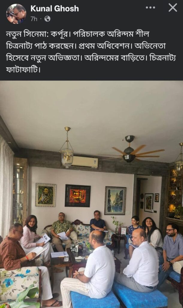 ছবি নিয়ে আলোচনার একটি ঝলকও কুণাল ঘোষ ভাগ করে নিয়েছেন সমাজমাধ্যমের পাতায়। যেখানে চিত্রনাট্য পাঠ করে শোনাচ্ছেন পরিচালক। কুণাল লেখেন, ‘অভিনেতা হিসেবে আমার নতুন অভিজ্ঞতা।’