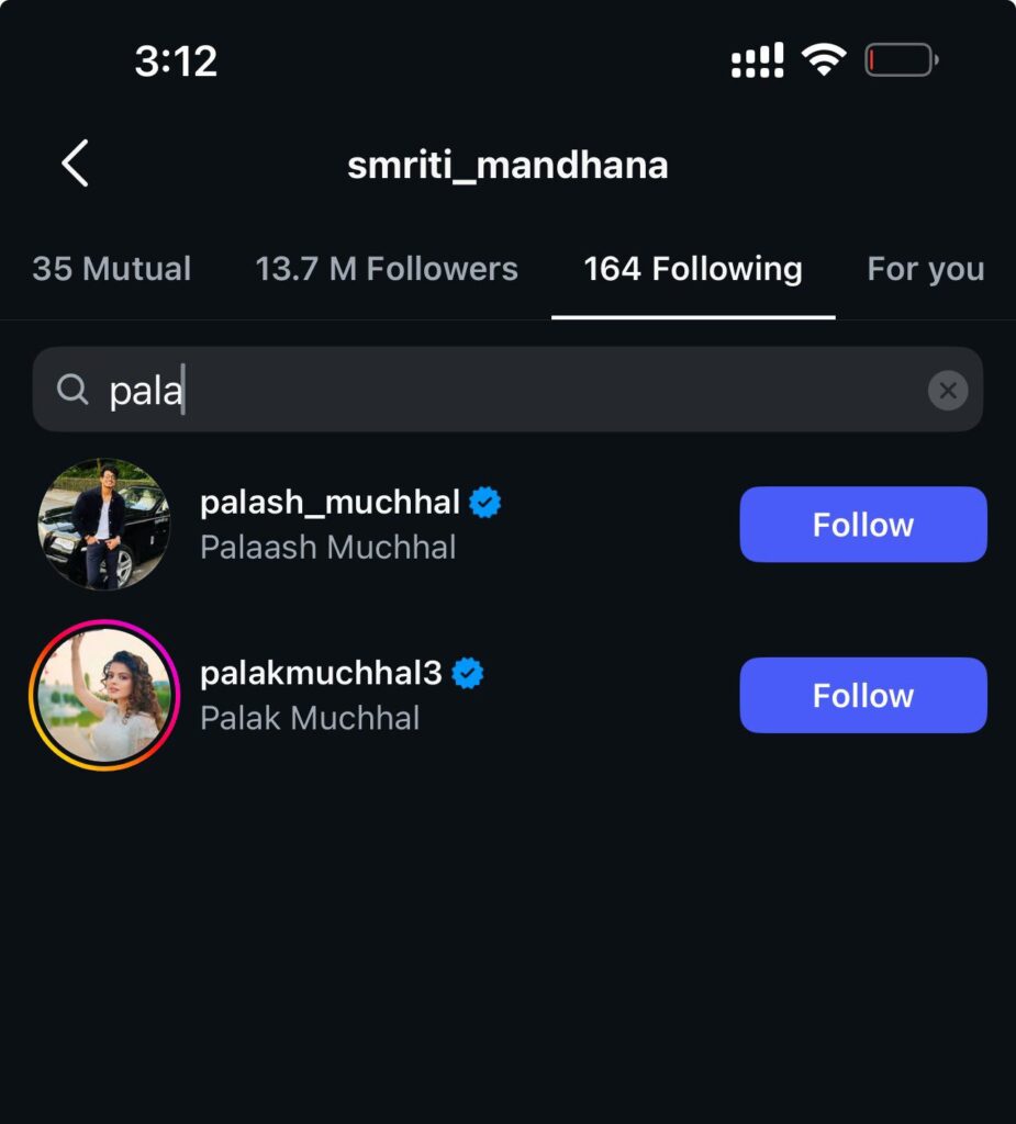 ধোঁয়াশা বাড়লেও পলাশ মুচ্ছলের সমাজ মাধ্যমে কোনও কিছুই ডিলিট করা হয়নি। একে অপরকে আনফলোও করেনি। এমনকি স্মৃতি প্রি ওয়েডিং মুছলেও পলাশের সঙ্গে বাকি ছবিও রয়েছে।
