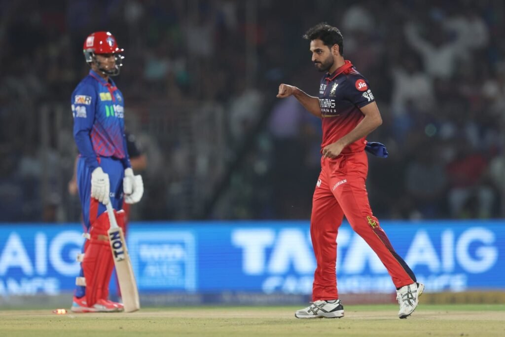 টস হেরে আগে ব্যাট করতে নেমেই ধসে পড়ে দিল্লি। ইনিংসের দ্বিতীয় বলেই সাহিল পরেখ শূন্য করে ফেরেন। এরপর জশ হ্যাজেলউড ও ভুবনেশ্বর কুমারের আগুনে স্পেলে একের পর এক উইকেট হারাতে থাকে দিল্লি। কেএল রাহুল (১), সমীর রিজভি (০), ত্রিস্তান স্টাবস (৫), অক্ষর প্যাটেল (০), নীতীশ রানা (১) প্রথম ছয় ব্যাটারের রান যোগ করলে দাঁড়ায় মাত্র ৭!